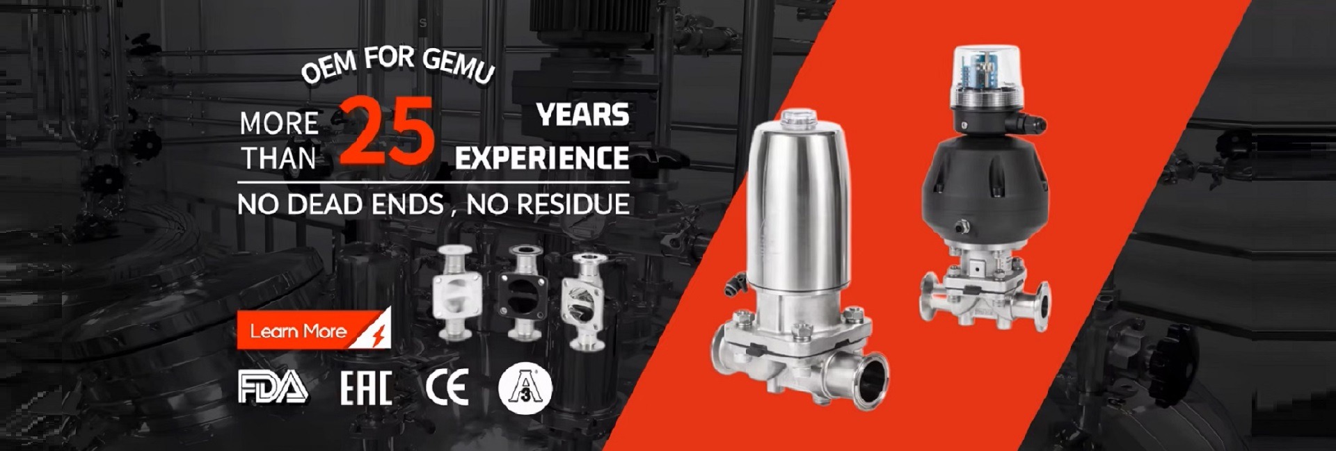 卫生区域用卫生隔膜阀,带聚四氟乙烯 + 三元乙丙橡胶垫圈